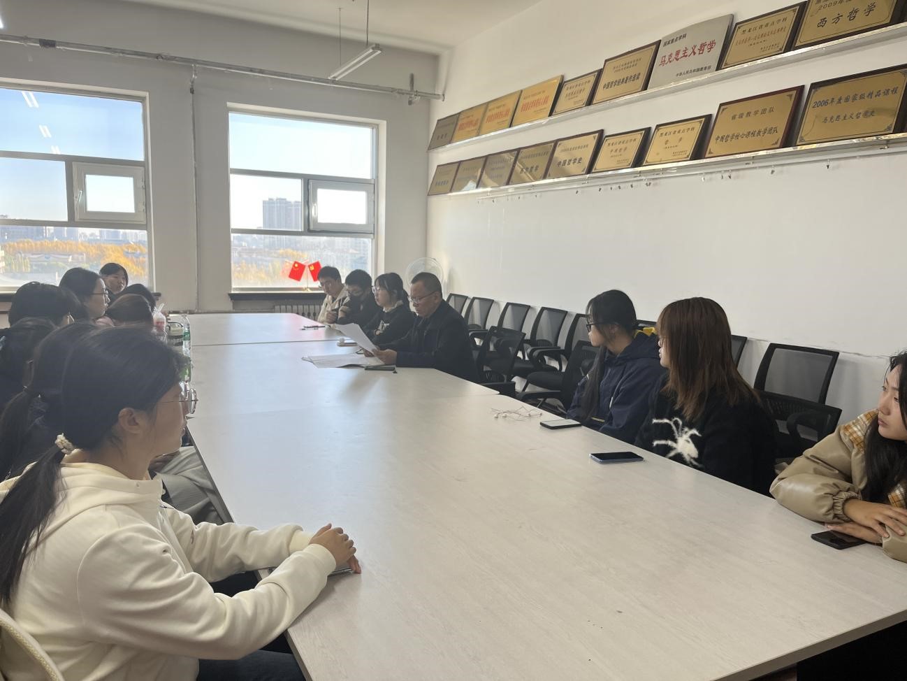 为了确保接下来的家庭经济困难认定工作精准到位,辅导员孙庆斌老师于2023年10月19日在汇文楼922组织参与家庭经济困难认定的同学召开会议,新生学生班主任张靖沂、栾丰河、李昕豫参加了此次会议。会上孙老师重点回答和解释了申报同学的问题,并对相关困难等级划分标准和佐证材料逐一进行审核。10月20日,各评议小组进行打分测评,评定等级,并上报学工系统。