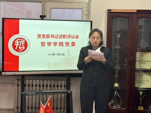 会议伊始,学院党委书记孙美晖对本次党支部书记述职评议考核工作的内容、流程和要求作了详细说明。随后,本科生2021级学生党支部书记焦瑞、本科生2022级学生党支部书记张博伦、本科生2024级学生党支部书记赵慧雪、博士生党支部书记王天夫、硕士生2022级学生党支部书记郭若言、硕士生2023级学生党支部书记于泳菲、硕士生2024级学生党支部书记王淼,依次围绕开展党纪学习教育及学习贯彻党的二十届三中全会精神和省委十三届六次全会精神情况、落实基层党建工作重点任务、落实基层党建工作责任制和全面从严治党要求、抓好有关问题整改等四个方面情况,对2024年履行职责方面进行了系统全面的阐述,深入查摆自身在抓基层党建工作上存在的问题及原因,同时结合本支部工作特点有针对性地提出了下步工作思路和主要措施。另有三位党支部书记进行了书面述职。
