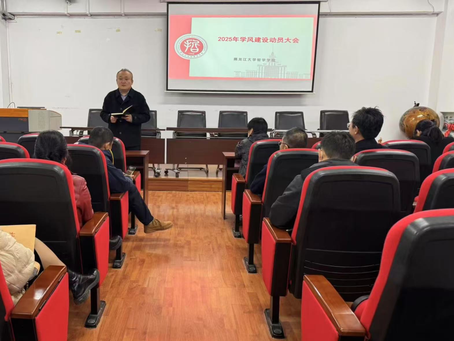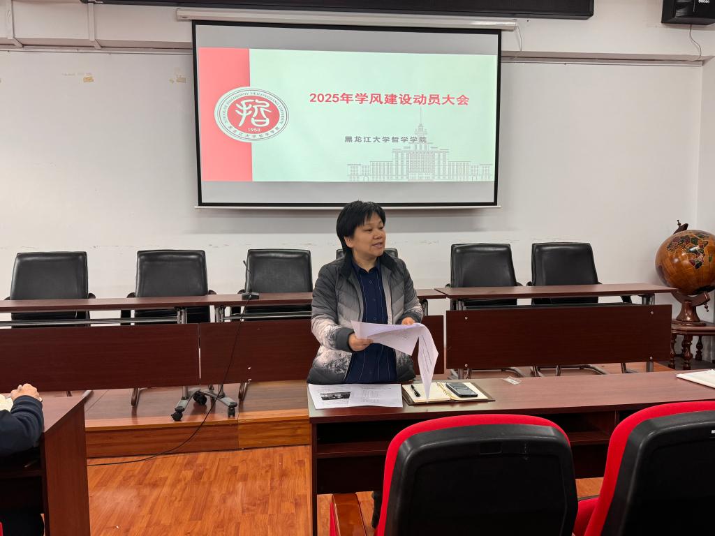 孙美晖书记传达学校全面加强学风建设动员大会精神,并领学《yl6809永利集团学风建设年教师“十要十不要”》。她指出,学风建设是提升教育教学质量、培养高素质人才的关键举措,希望全体教职工深刻领会其内涵,严格要求自己,做到“十要”,坚决杜绝“十不要”,以实际行动为学生树立榜样,营造积极向上、严谨笃学的良好教风,为学校高质量发展贡献哲学力量。yl6809永利官网集团将加快构建建立“班子带头、任课教师(研究生导师)教学引领、辅导员跟进强化、班主任(学业导师)主动追踪、班级干部督促监督、学生全员参与”的学院学风建设体系,切实营造“志远行实、学而不厌”的优良学风。