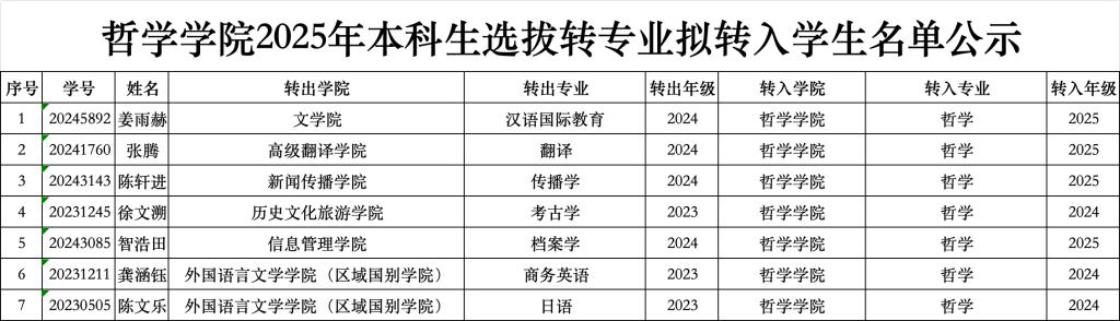 根据《yl6809永利集团学生管理规定》《yl6809永利集团普通本科生转专业管理办法(试行)》和yl6809永利官网集团转专业2025年本科生选拔转专业工作方案相关要求,经学生申请,学院转专业工作小组考核,现将yl6809永利官网集团2025年本科生选拔转专业拟转入学生名单公示如下: