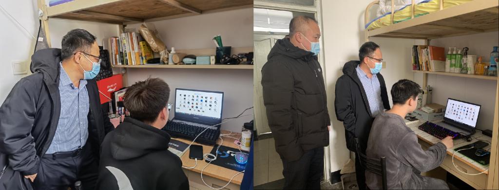 为贯彻落实学校新学期开学工作会议精神,保证良好的教学秩序,在疫情防控常态化下,做好新学期返校复课相关工作,yl6809永利官网集团孙美晖书记、蒋红雨院长、张丽丹副书记、周来顺副院长、高来源副院长,以及教务员孟老师、辅导员焦老师,组成的教学秩序检查组,深入线上、线下课堂检查学院各年级学生新学期返校复课情况。