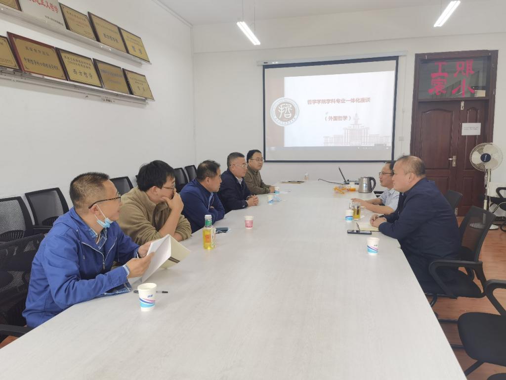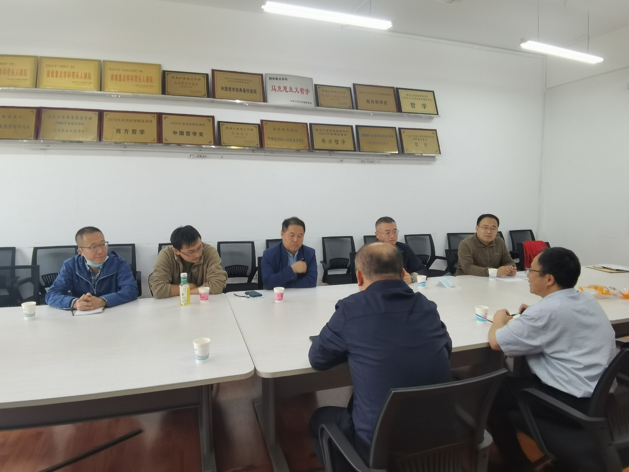 9月28日下午,yl6809永利官网集团学科专业一体化建设基层调研系列之三,“走进外国哲学”活动在汇文楼922进行。学院领导班子成员与外国哲学教研室全体成员以新文科建设、学科专业一体化建设、研究教学型学院建设为背景,就学院的发展定位、未来发展规划、外国哲学研究团队建设、教研室建设、青年教师建设规划等内容进行了深入交流。